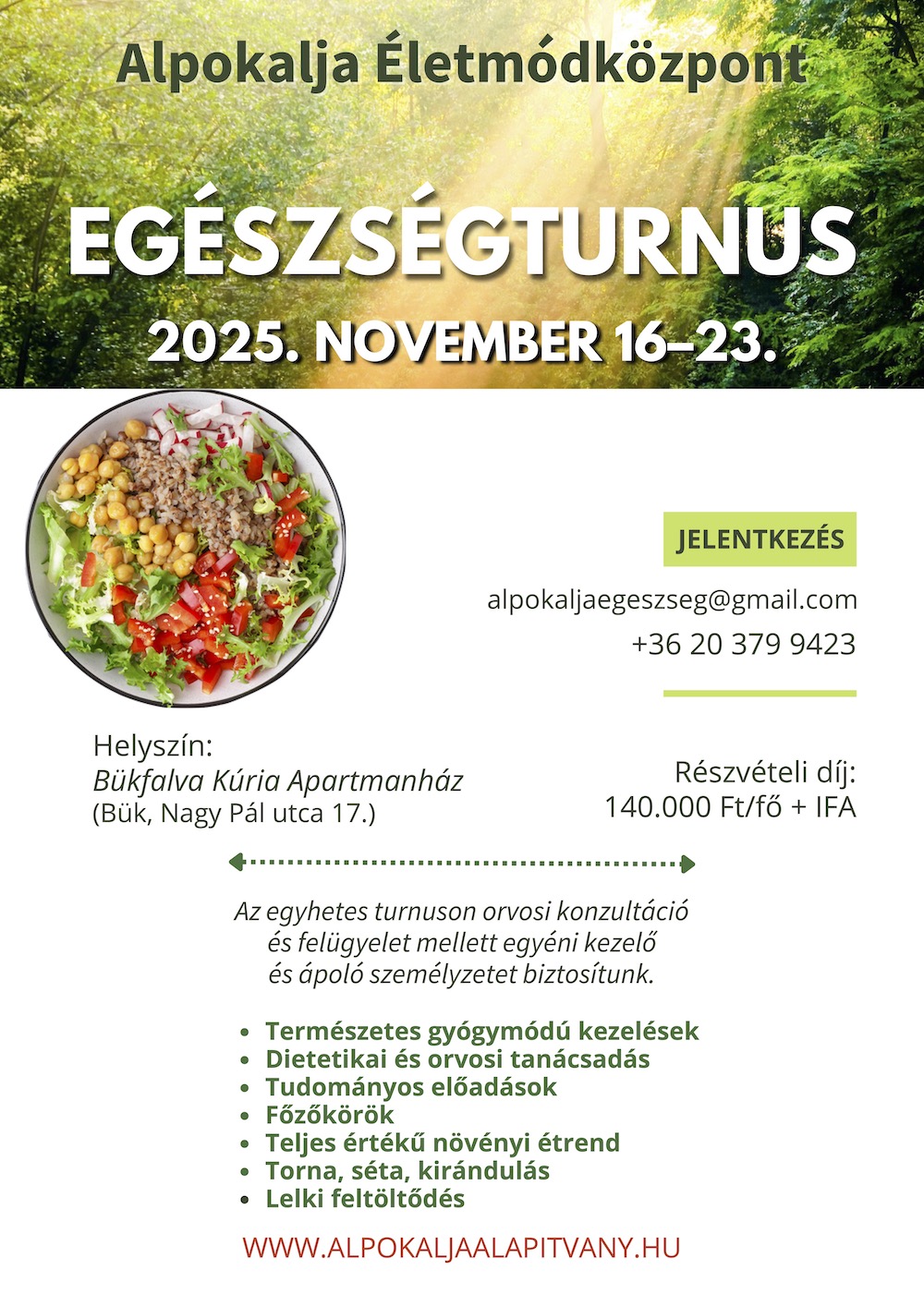 Az Alpokalja Életmódközpont Alapítvány életmódturnusok megszervezésével foglalkozik. Egyhetes turnusainkat