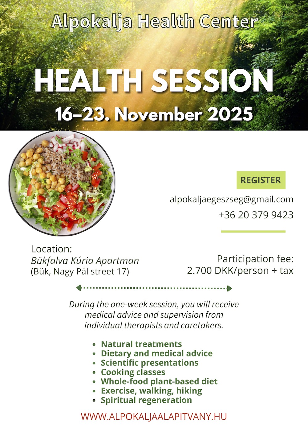 In the case of lifestyle (non-communicable) diseases, we aim to identify the root causes. We use simple, accessible, easy to learn and affordable treatments based on good nutrition, the healing effects of breathing and movement, and the therapeutic use of sunlight and water. Our fundamental aim is to enable our patients to incorporate these techniques into their daily lives, maintaining their health and well-being.